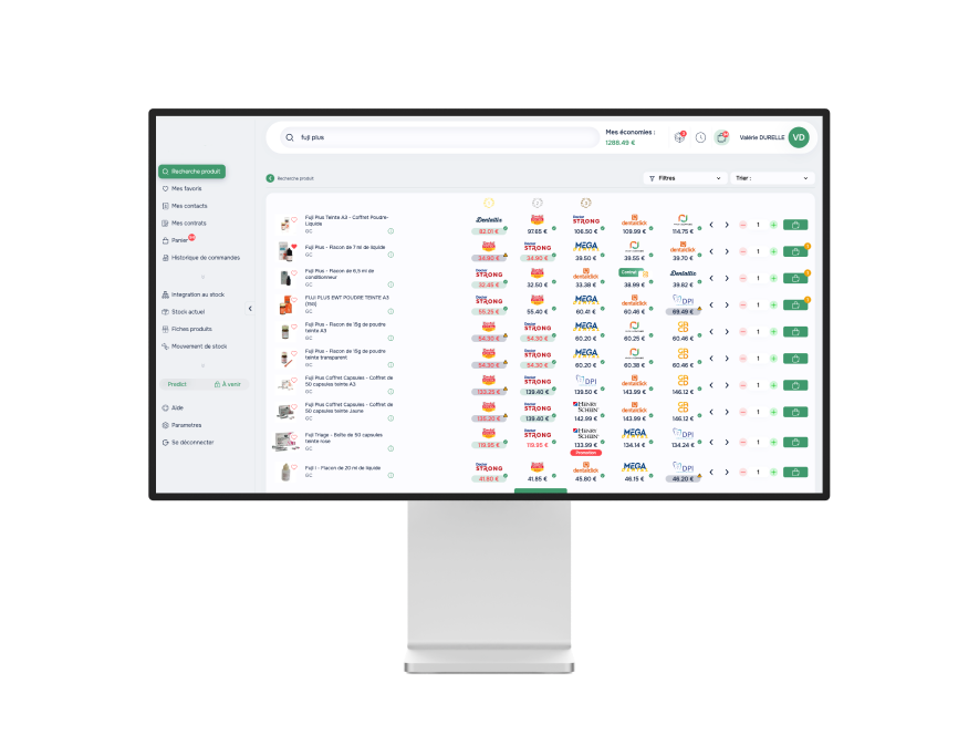 Le module Predict est une avancée majeure dans la gestion des fournitures dentaires. En greffant une intelligence artificielle (IA) performante aux modules Compare et Manage, il transforme la gestion de votre cabinet en une démarche proactive et optimisée. Anticipez vos besoins, économisez davantage et gagnez en sérénité grâce à des recommandations personnalisées, des alertes pertinentes et une gestion automatisée.