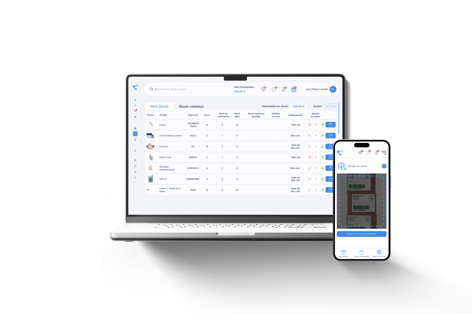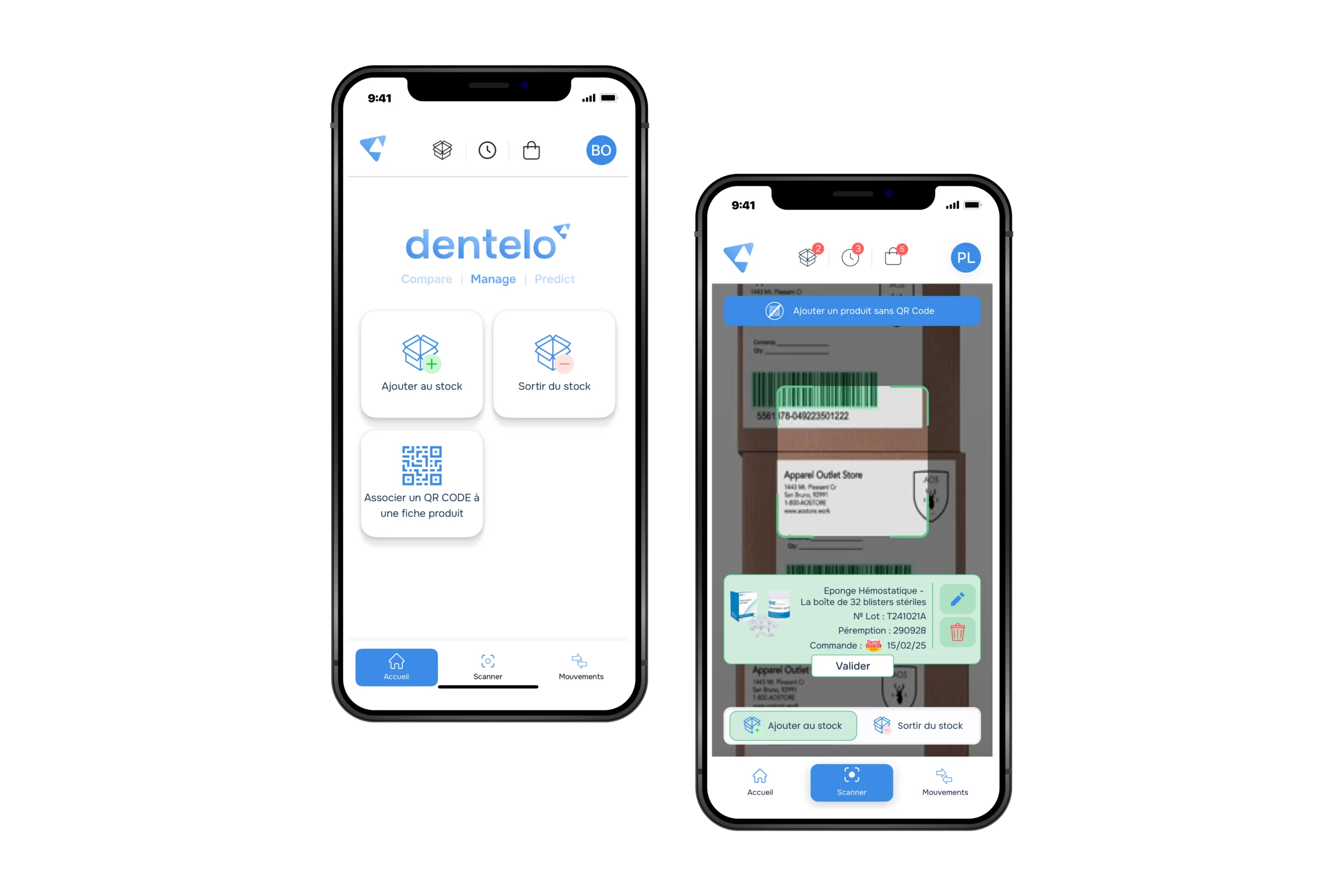 La gestion des stocks est un enjeu crucial pour les cabinets dentaires. Avec le module Manage, vous disposez d’un outil moderne et intuitif qui simplifie chaque étape de ce processus. Plus besoin de matériel encombrant ou de scannette : tout est centralisé et accessible via une application mobile dédiée. Ce module optimise votre gestion des consommables, réduit les pertes et vous permet de gagner du temps, jour après jour.